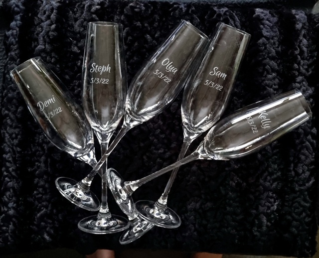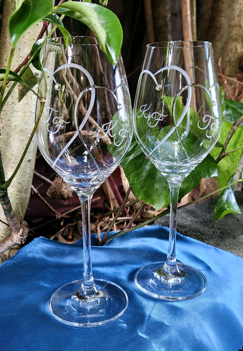 Add a personal touch to your special day with beautifully engraved champagne flutes or wine glasses or have a unique present engraved to be gifted.